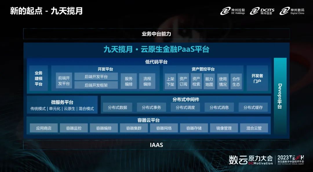 作为数字时代的金融“云原生”架构平台,“九天揽月平台”的成功发布,统筹安全与发展支撑国内金融机构的数字化转型,有力推动中国金融行业整体IT架构的再次演进。